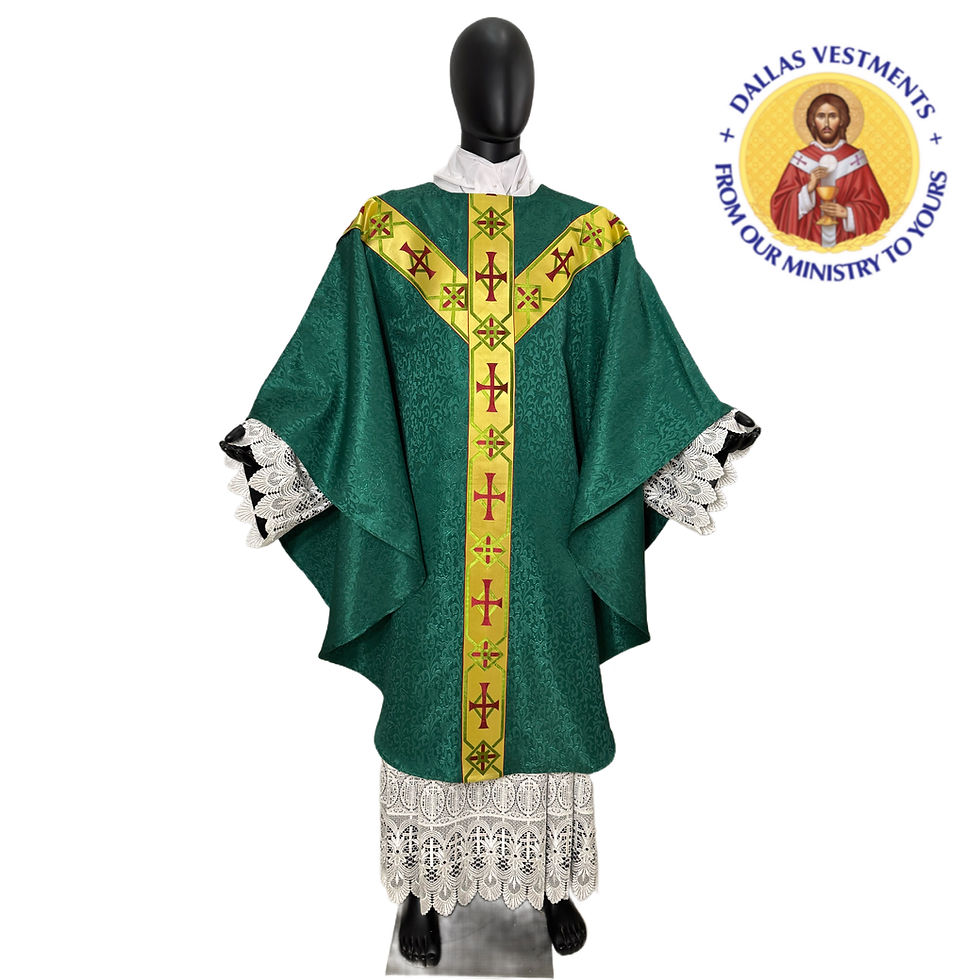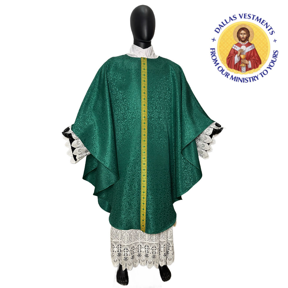 We offer service for the celebration sets, including matching celebrant chasubles, concelebrant chasubles, dalmatics, and stoles. Don't hesitate to get in touch with us via dallasvestment@gmail.com to check for designs and availability.