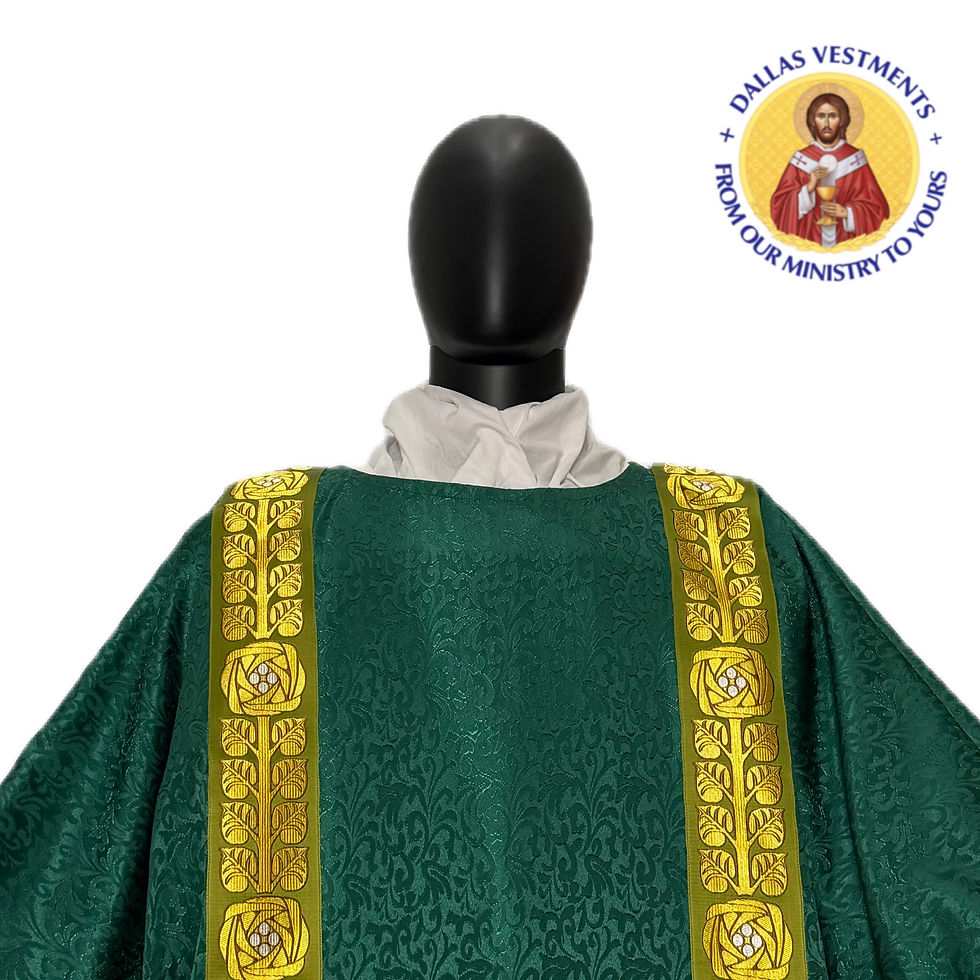 We offer service for the celebration sets, including matching celebrant chasubles, concelebrant chasubles, dalmatics, and stoles. Don't hesitate to get in touch with us via dallasvestment@gmail.com to check for designs and availability.