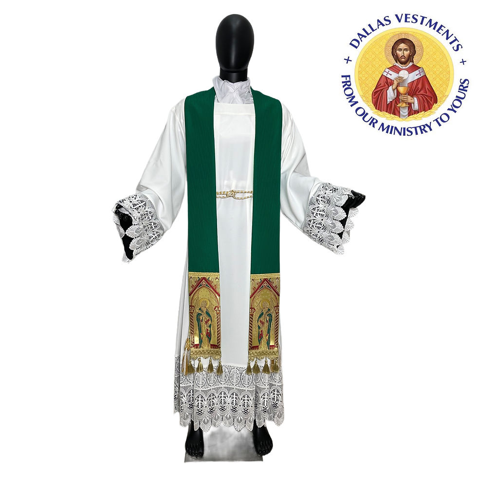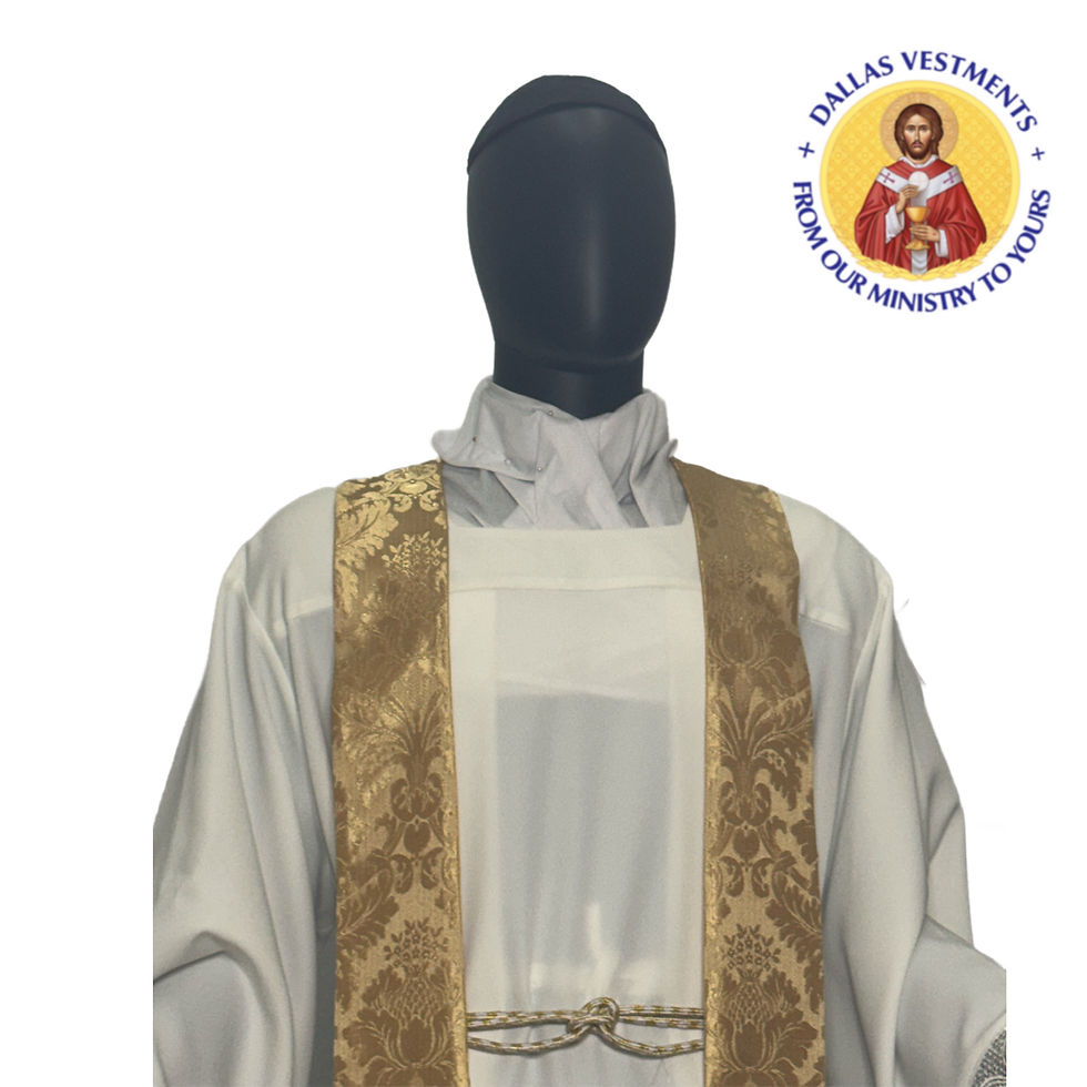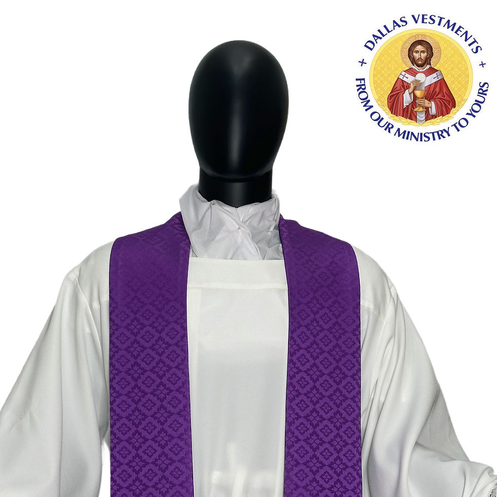 A priest's stole is a liturgical vestment, a long, narrow strip of cloth worn around the neck, symbolizing the priest's ordination and ministry. It represents the priest's authority to administer sacraments and preach the gospel, signifying the yoke of Christ and their role as a servant of God
