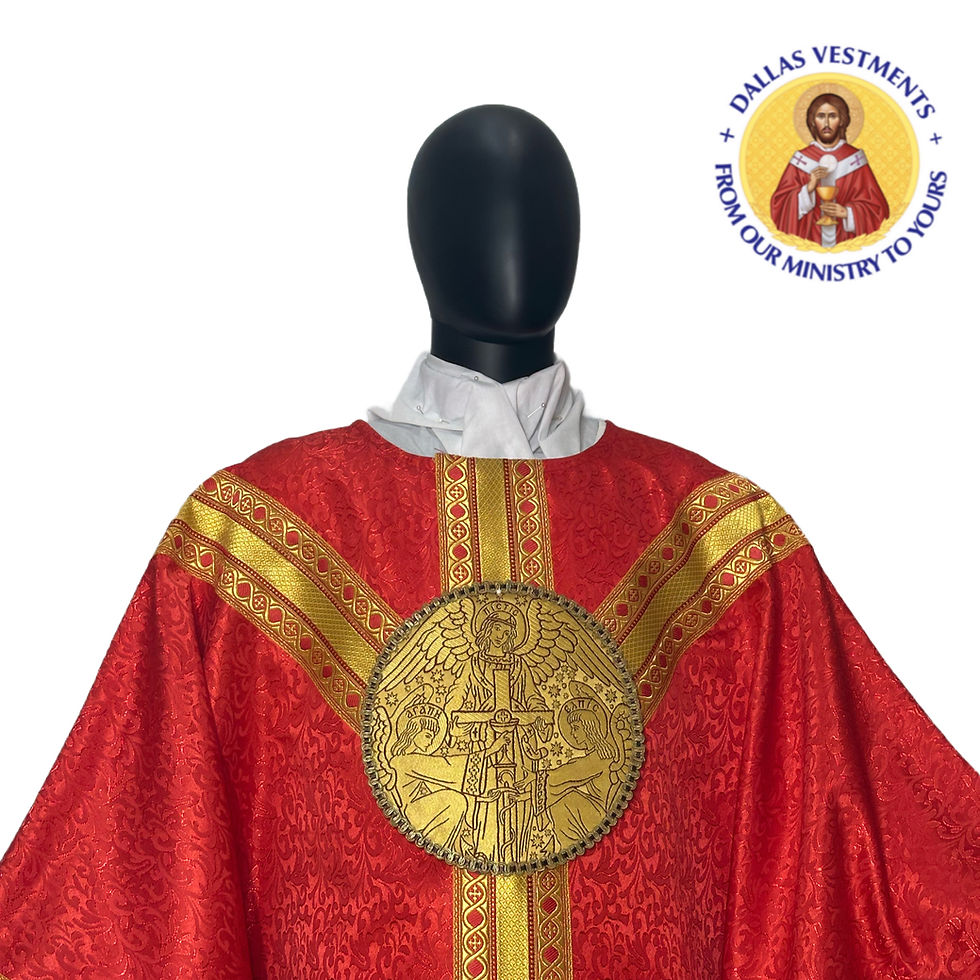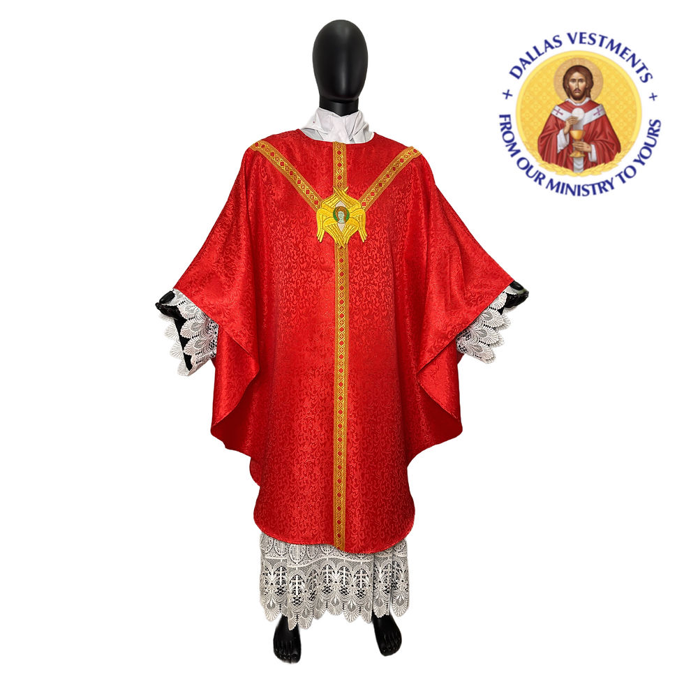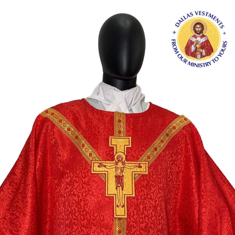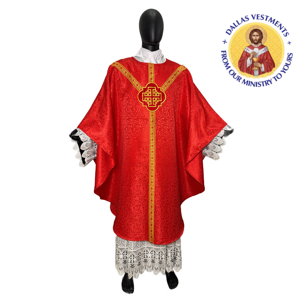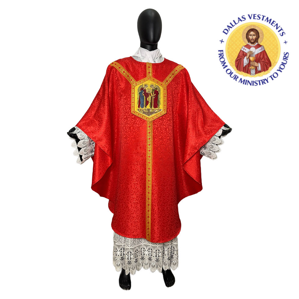 We offer service for the celebration sets, including matching celebrant chasubles, concelebrant chasubles, dalmatics, and stoles. Don't hesitate to get in touch with us via dallasvestment@gmail.com to check for designs and availability.